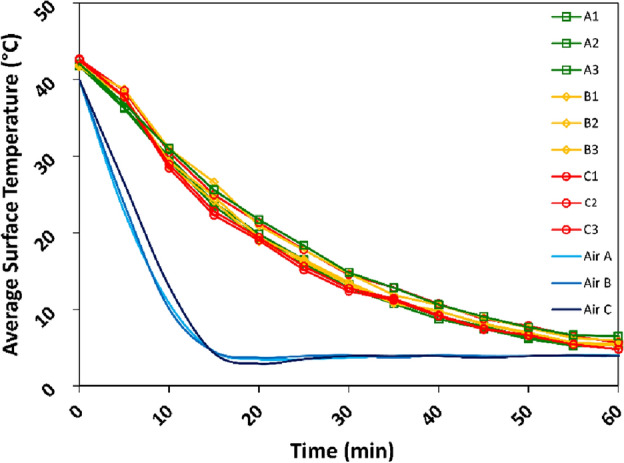 Evaluating physical properties and mechanical parameters of rock slopes and their spatial variability is challenging, particularly at locations inaccessible for fieldwork. This obstacle can be bypassed by acquiring spatially-distributed field data indirectly. InfraRed Thermography (IRT) has emerged as a promising technology to statistically infer rock properties and inform slope stability models. Here, we explore the use of Cooling Rate Indices (CRIs) to quantify the thermal response of a granodiorite rock wall within the recently established Požáry Test Site in Czechia. We observe distinct cooling patterns across different segments of the wall, compatible with the different degrees of weathering evaluated in the laboratory and suggested by IRT observations of cored samples. Our findings support previous examinations of the efficacy of this method and unveil correlations between cooling phases in the field and in the laboratory. We discuss the scale-dependency of the Informative Time Window (ITW) of the CRIs, noting that it may serve as a reference for conducting systematic IRT field surveys. We contend that our approach not only represents a viable and scientifically robust strategy for characterising rock slopes but also holds the potential for identifying unstable areas.