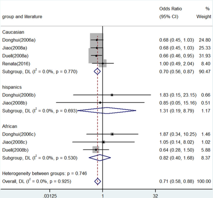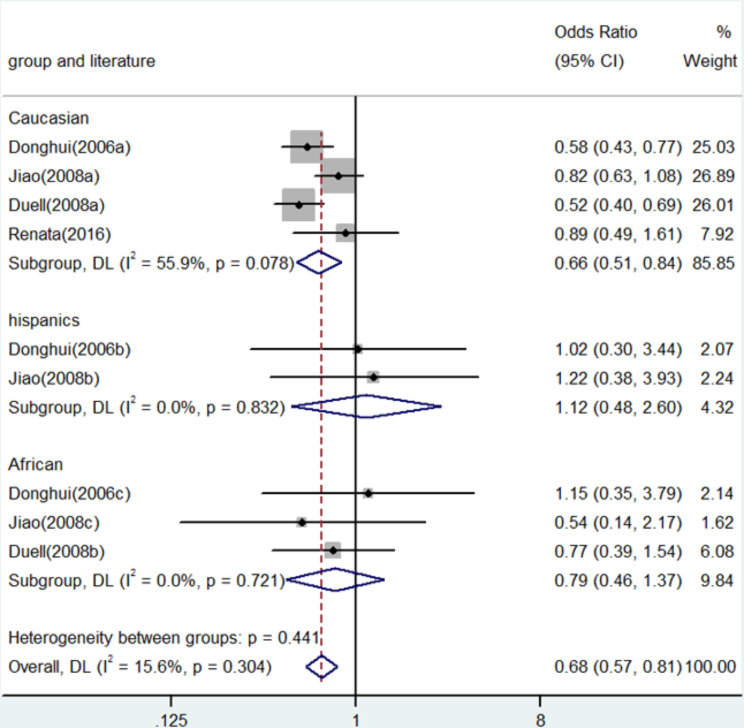 Results: The analysis revealed significant associations between the XRCC3 Thr241Met polymorphism and an increased risk of pancreatic cancer. This was evidenced through various genetic model comparisons: allele contrast (T vs. C: OR = 0.77, 95% CI = 0.70-0.86, P < 0.001), homozygote comparison (TT vs. CC: OR = 0.71, 95% CI = 0.58-0.88, P = 0.001), heterozygote comparison (TC vs. CC: OR = 0.67, 95% CI = 0.52-0.87, P = 0.003), and a dominant genetic model (TT/TC vs. CC: OR = 0.68, 95% CI = 0.57-0.81, P < 0.001). Additionally, subgroup analyses based on ethnicity disclosed that these associations were particularly pronounced in the Caucasian population, with all genetic models showing significance (P < 0.05).