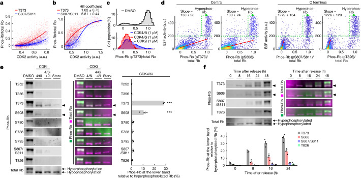 Tissue repair, immune defence and cancer progression rely on a vital cellular decision between quiescence and proliferation1,2. Mammalian cells proliferate by triggering a positive feedback mechanism3,4. The transcription factor E2F activates cyclin-dependent kinase 2 (CDK2), which in turn phosphorylates and inactivates the E2F inhibitor protein retinoblastoma (Rb). This action further increases E2F activity to express genes needed for proliferation. Given that positive feedback can inadvertently amplify small signals, understanding how cells keep this positive feedback in check remains a puzzle. Here we measured E2F and CDK2 signal changes in single cells and found that the positive feedback mechanism engages only late in G1 phase. Cells spend variable and often extended times in a reversible state of intermediate E2F activity before committing to proliferate. This intermediate E2F activity is proportional to the amount of phosphorylation of a conserved T373 residue in Rb that is mediated by CDK2 or CDK4/CDK6. Such T373-phosphorylated Rb remains bound on chromatin but dissociates from it once Rb is hyperphosphorylated at many sites, which fully activates E2F. The preferential initial phosphorylation of T373 can be explained by its relatively slower rate of dephosphorylation. Together, our study identifies a primed state of intermediate E2F activation whereby cells sense external and internal signals and decide whether to reverse and exit to quiescence or trigger the positive feedback mechanism that initiates cell proliferation.