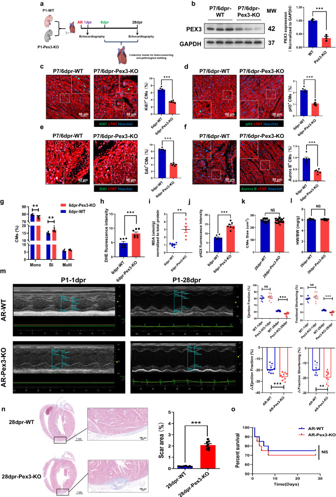The peroxisome is a versatile organelle that performs diverse metabolic functions. PEX3, a critical regulator of the peroxisome, participates in various biological processes associated with the peroxisome. Whether PEX3 is involved in peroxisome-related redox homeostasis and myocardial regenerative repair remains elusive. We investigate that cardiomyocyte-specific PEX3 knockout (Pex3-KO) results in an imbalance of redox homeostasis and disrupts the endogenous proliferation/development at different times and spatial locations. Using Pex3-KO mice and myocardium-targeted intervention approaches, the effects of PEX3 on myocardial regenerative repair during both physiological and pathological stages are explored. Mechanistically, lipid metabolomics reveals that PEX3 promotes myocardial regenerative repair by affecting plasmalogen metabolism. Further, we find that PEX3-regulated plasmalogen activates the AKT/GSK3β signaling pathway via the plasma membrane localization of ITGB3. Our study indicates that PEX3 may represent a novel therapeutic target for myocardial regenerative repair following injury.