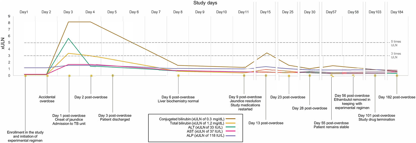 Conjugated hyperbilirubinemia associated with accidental rifapentine overdose