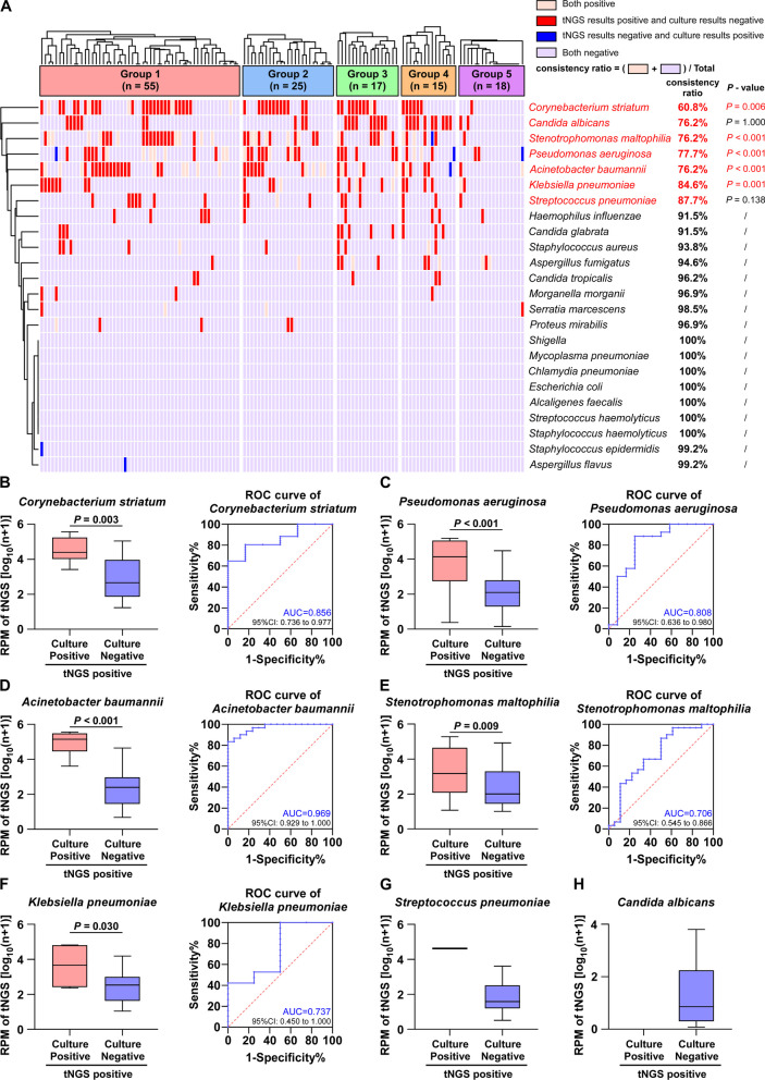 Results: The tNGS results for the analysis of the 130 patients showed a concordance rate of over 70% with clinical diagnostic results. The detection of pathogenic microorganisms using tNGS was in agreement with the results of culture, mNGS, and RT-qPCR. Furthermore, the tNGS results for pathogens in the five patients monitored for complicated infections of severe pneumonia were consistent with the culture and imaging test results during treatment. The tNGS drug resistance results were in line with the drug sensitivity results in approximately 65% of the cases.