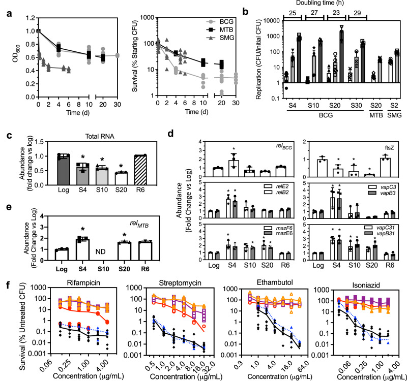 ) BCG after 48 h of exposure. Data represent mean ± SD for n ≥ 6. c–e Data represent mean ± SD for n ≥ 3; *P < 0.05 determined by one-way ANOVA with Dunnett's test vs. Log. See Supplementary Data 4 for the source data used in these graphs.