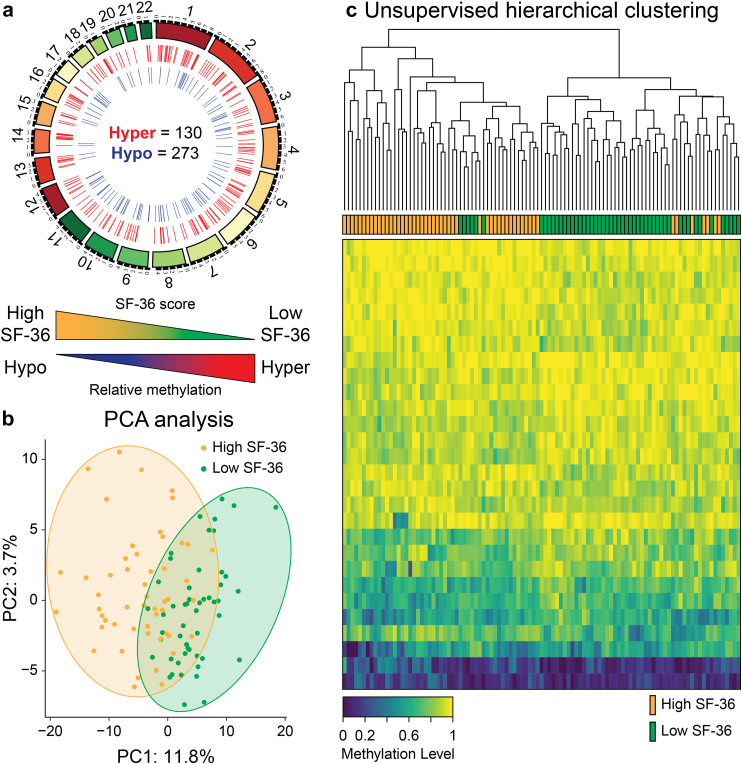 Methods: In this single centre prospective cohort study, PASC, post-COVID without PASC, and healthy participants were enrolled to investigate their symptoms association with peripheral blood DNA methylation data generated with state-of-the-art whole genome sequencing. PASC-induced quality-of-life deterioration was scored with a validated instrument, SF-36. Analyses were conducted to identify potential functional roles of differentially methylated loci, and machine learning algorithms were used to resolve PASC severity.