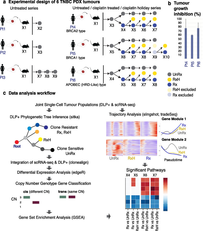 Keywords: Cisplatin treatment; Clone aware analysis; DLP+ single-cell sequencing; In-cis/in-trans genes; PDX; Sensitive/resistant clones; Single-cell RNA sequencing.