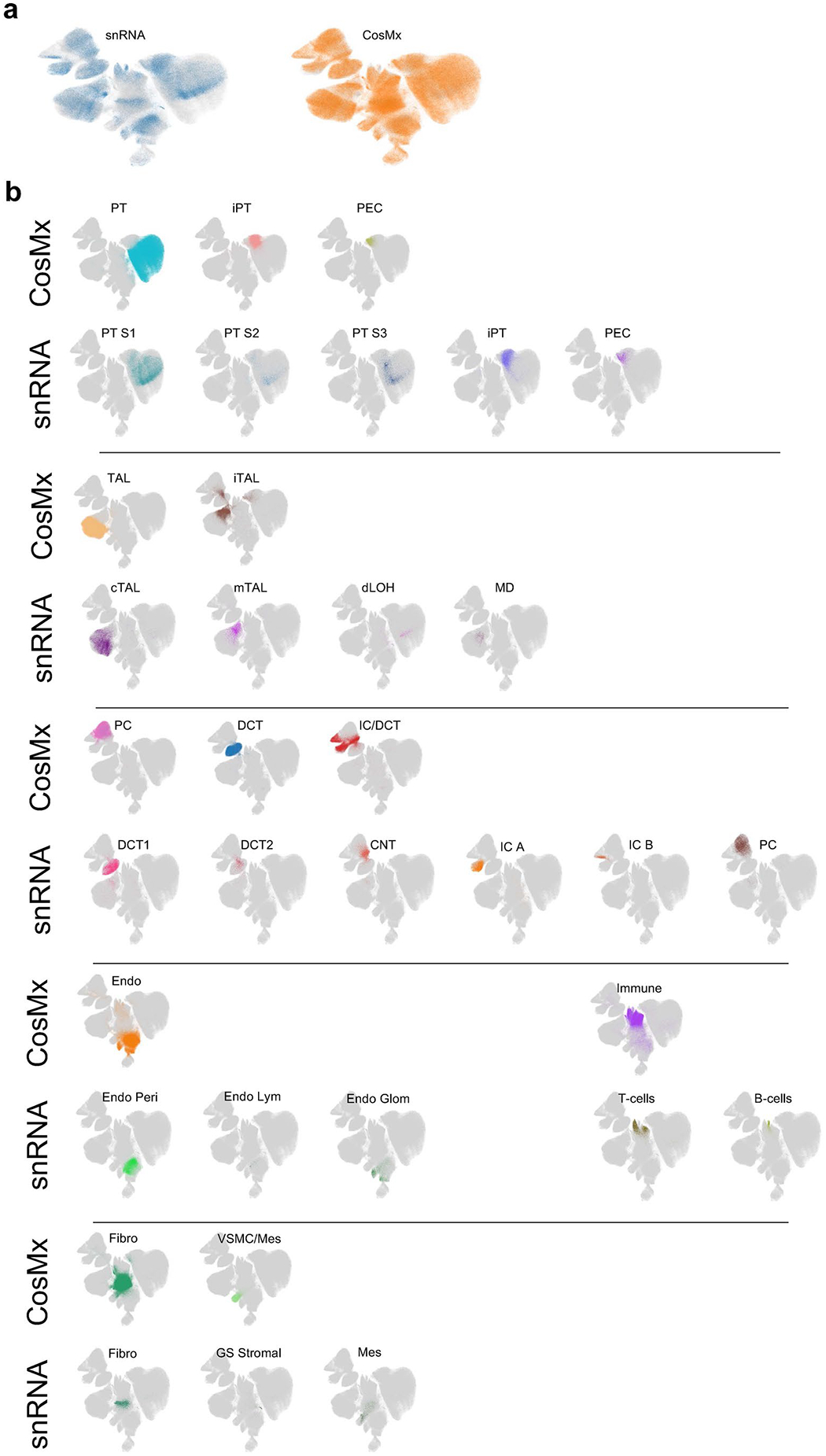 Kidneys are intricate three-dimensional structures in the body, yet the spatial and molecular principles of kidney health and disease remain inadequately understood. We generated high-quality datasets for 81 samples, including single-cell, single-nuclear, spot-level (Visium) and single-cell resolution (CosMx) spatial-RNA expression and single-nuclear open chromatin, capturing cells from healthy, diabetic and hypertensive diseased human kidneys. Combining these data, we identify cell types and map them to their locations within the tissue. Unbiased deconvolution of the spatial data identifies the following four distinct microenvironments: glomerular, immune, tubule and fibrotic. We describe the complex organization of microenvironments in health and disease and find that the fibrotic microenvironment is able to molecularly classify human kidneys and offers an improved prognosis compared to traditional histopathology. We provide a comprehensive spatially resolved molecular roadmap of the human kidney and the fibrotic process, demonstrating the clinical utility of spatial transcriptomics.