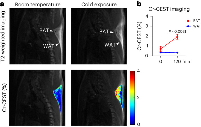 K.C., Z.C. and Z.L. filed a US patent application through the University of Illinois at Chicago, ‘Systems and methods for magnetic resonance imaging (MRI) noninvasive mapping of brown adipose tissue activity’. The other authors declare no competing interests.