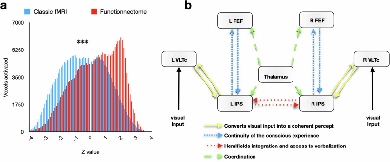 Consciousness, a cornerstone of human cognition, is believed to arise from complex neural interactions. Traditional views have focused on localized fronto-parietal networks or broader inter-regional dynamics. In our study, we leverage advanced fMRI techniques, including the novel Functionnectome framework, to unravel the intricate relationship between brain circuits and functional activity shaping visual consciousness. Our findings underscore the importance of the superior longitudinal fasciculus within the fronto-parietal fibers, linking conscious perception with spatial neglect. Additionally, our data reveal the critical contribution of the temporo-parietal fibers and the splenium of the corpus callosum in connecting visual information with conscious representation and their verbalization. Central to these networks is the thalamus, posited as a conductor in synchronizing these interactive processes. Contrasting traditional fMRI analyses with the Functionnectome approach, our results emphasize the important explanatory power of interactive mechanisms over localized activations for visual consciousness. This research paves the way for a comprehensive understanding of consciousness, highlighting the complex network of neural connections that lead to awareness.