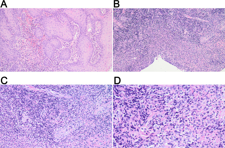 Case presentation: A 13-year-old girl presented with an unexplained sore throat for more than 2 months, together with intermittent fever and suppurative tonsilitis. Nasopharyngoscopy revealed a pharyngeal mass. Enhanced computed tomography (CT) scan showed tonsillar hypertrophy and punctate calcification. Chronic pyogenic granulomatous inflammation with pseudoepithelial squamous epithelial hyperplasia was observed in left tonsil, and pyogenic granulomatous inflammation and a small number of T-lymphoid cells were detected in the right tonsil. The immunohistochemical results showed CD2+, CD3+, CD4+, CD5+, CD8+, granzyme B+, and TIA-1+. The Ki-67 proliferation index was 20%. The case showed T cell receptor gene rearrangement. Finally, the case was diagnosed as ENKTL of stage II with tonsil involvement. The patient received 6 cycles of chemotherapy with SMILE regimen, and showed complete response with no recurrence in the follow-up.