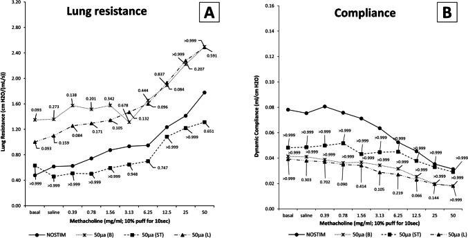 After esophagectomy, an imbalanced inflammatory response increases the risk of postoperative morbidity. The vagus nerve modulates local and systemic inflammatory responses, but its pulmonary branches are transected during esophagectomy as part of the oncological resection, which may account for the high incidence of postoperative (pulmonary) complications. This study investigated the effect of electrical vagus nerve stimulation (VNS) on lipopolysaccharide (LPS)-induced lung injury in rats. Rats (n = 60) were randomly assigned to a non-vagotomy or cervical vagotomy group, with VNS or without (NOSTIM). There were four non-vagotomy groups: NOSTIM and bilateral VNS with 100, 50, or 10 µA. The four vagotomy groups were NOSTIM and VNS with fixed amplitude (50 µA) bilaterally before (VNS-50-before) or after bilateral vagotomy (VNS-50-after), or unilaterally (left) before ipsilateral vagotomy (VNS-50-unilaterally). LPS was administered intratracheally after surgery. Pulmonary function, pro-inflammatory cytokines in serum, broncho-alveolar lavage fluid (BALF), and histopathological lung injury (LIS) were assessed 180 min post-procedure. In non-vagotomized rats, neutrophil influx in BALF following intra-tracheal LPS (mean 30 [± 23]; P = 0.075) and LIS (mean 0.342 [± 0.067]; P = 0.142) were similar after VNS-100, compared with NOSTIM. VNS-50 reduced neutrophil influx (23 [± 19]; P = 0.024) and LIS (0.316 [± 0.093]; P = 0.043). VNS-10 reduced neutrophil influx (15 [± 6]; P = 0.009), while LIS (0.331 [± 0.053]; P = 0.088) was similar. In vagotomized rats, neutrophil influx (52 [± 37]; P = 0.818) and LIS (0.407 [SD ± 0.037]; P = 0.895) in VNS-50-before were similar compared with NOSTIM, as well as in VNS-50-after (neutrophils 30 [± 26]; P = 0.090 and LIS 0.344 [± 0.053]; P = 0.073). In contrast, VNS-50-unilaterally reduced neutrophil influx (26 [± 10]; P = 0.050) and LIS (0.296 [± 0.065]; P = 0.005). Systemic levels of cytokines TNF-α and IL-6 were undetectable in all groups. Pulmonary function was not statistically significantly affected. In conclusion, VNS limited influx of neutrophils in lungs in non-vagotomized rats and may attenuate LIS. Unilateral VNS attenuated lung injury even after ipsilateral vagotomy. This effect was absent for bilateral VNS before and after bilateral vagotomy. It is suggested that the effect of VNS is dependent on (partially) intact vagus nerves and that the level of the vagotomy during esophagectomy may influence postoperative pulmonary outcomes.