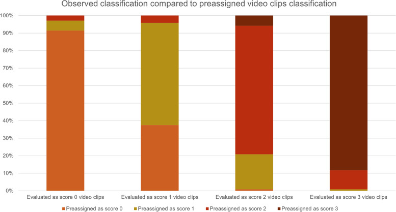 Results: Over a period of 3 months, 20 experienced operators completed the assessment. Most worked in the ICU (10), ED (6), HDU (2), cardiology ward (1), or obstetric/gynecology department (1). The proportional LUS score mean was 15.3 (SD 1.6). Inter-rater agreement varied: 6 clips had full agreement, 3 had 19 out of 20 raters agreeing, and 3 had 18 agreeing, while the remaining 13 had 17 or fewer people agreeing on the assigned score. Scores 0 and score 3 were more reproducible than scores 1 and 2. Fleiss' Kappa for overall answers was 0.87 (95% CI 0.815-0.931, p < 0.001).