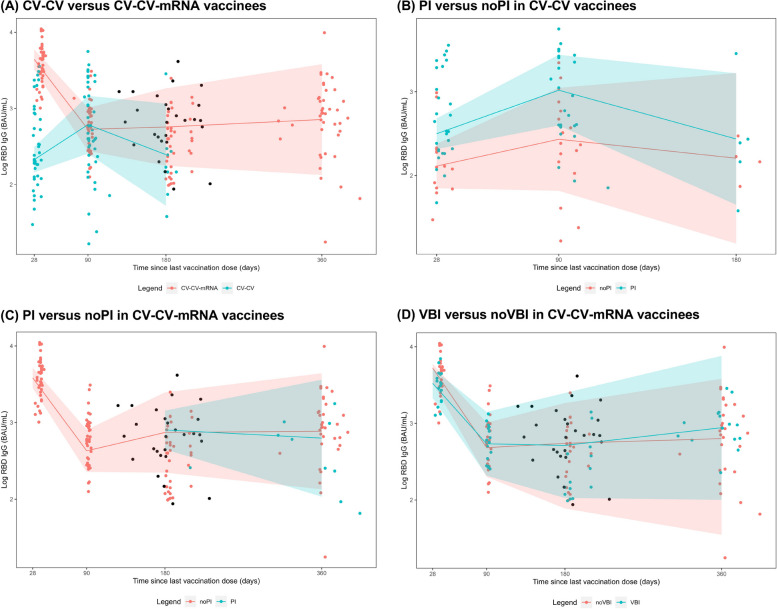 Results: Of 138 participants, 52 (37.7%) had a prior infection and 78 (56.5%) received an mRNA-1273 booster. After two-dose CoronaVac, antibody titers had significantly declined within 180 days, irrespective of prior infection. After mRNA-1273 booster, anti-spike IgG (1.47% decline/day) and Omicron B.1.1.529/BA.2 nAbs declined between day 28-90, and IgG titers plateaued between day 90-360. During the BA.1/BA.2 wave (February-March 2022), 34.6% (27/78) of individuals experienced a VBI (median 181 days after mRNA-1273), although none developed severe illness. VBI was associated with low pre-VBI anti-spike IgG and B.1.1.529/BA.2 nAbs, which were restored post-VBI.