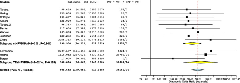 Conclusion: The 12 studies included in the meta-analysis provided a total of 1311 patients for the analysis (398 valuated with ctHPVDNA and 913 with TTMV-HPVDNA). Pooled sensitivity and specificity were 86% (95% CI: 78%-91%) and 96% (95% CI: 91%-99%), respectively; negative and positive likelihood ratios were 0.072 (95% CI: 0.057-0.093) and 24.7 (95% CI: 6.5-93.2), respectively; pooled DOR was 371.66 (95% CI: 179.1-918). The area under the curve (AUC) was 0.81 (95% CI, 0.67-0.91). Liquid biopsy for the identification of cell free DNA might identify earlier recurrence in HPV + OPSCC patients. At the present time, liquid biopsy protocol needs to be standardized and liquid biopsy cannot yet be used in clinical setting. In the future, a multidimensional integrated approach which links multiple clinical, radiological, and laboratory data will contribute to obtain the best follow-up strategies for the follow-up of HPV-OPSCC.