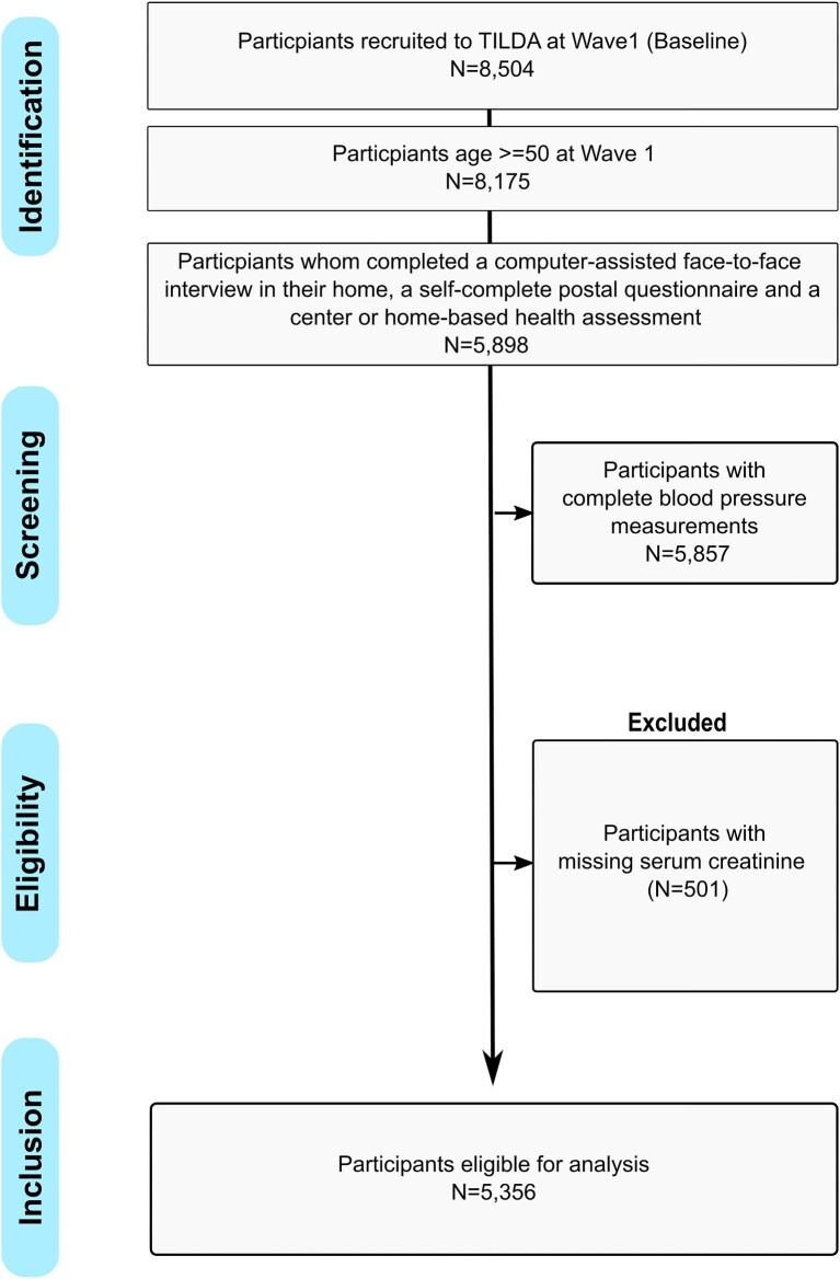 Methods: Data were analysed from participants in Wave 1 of The Irish Longitudinal Study on Ageing (TILDA) who were aged 50 years and older. CKD was defined as eGFR <60 ml/min/1.72 m2, hypertension defined as systolic blood pressure (SBP) ≥140 mmHg and/or diastolic blood pressure (DBP) ≥90 mmHg and/or self-reported use of antihypertensive medication. Participant awareness and treatment of hypertension was based on self-report and SBP/DBP <140/90 mmHg. Multivariable logistic regression examined relationships with awareness, treatment, and control of hypertension expressed as adjusted odds ratios.