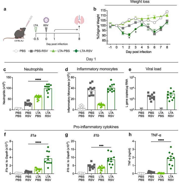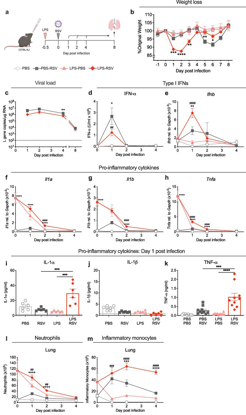 Exposure to bacterial PAMPs before RSV infection exacerbates innate inflammation and disease via IL-1α and TNF-α