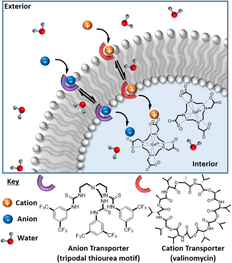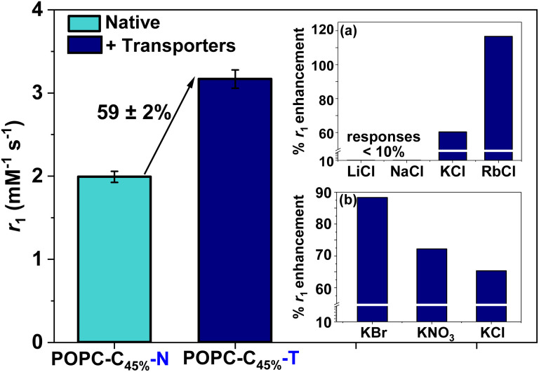 An ion-responsive MRI contrast agent based on a POPC liposomal scaffold is generated that displays a large amplitude relaxivity switch. Entrapment of MR active Gd-DOTA within cholesterol-doped, i.e., membrane rigidified, liposomes dampens the MR response through diminished water exchange across the lipid bilayer. Relaxivity is re-established by integration of ion carriers in the liposome membrane to mediate solvated ion flux.