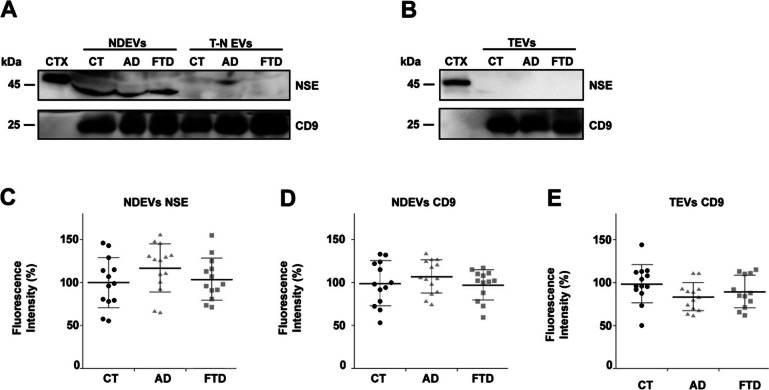 Despite the efforts to identify fluid biomarkers to improve diagnosis of Frontotemporal dementia (FTD), only a few candidates have been described in recent years. In a previous study, we identified three circulating miRNAs (miR-92a-3p, miR-320a and miR-320b) differentially expressed in FTD patients with respect to healthy controls and/or Alzheimer's disease (AD) patients. Now, we investigated whether those changes could be due to miRNAs contained in neuron-derived extracellular vesicles (NDEVs). We also evaluated miRNAs content in total plasma EVs and in CSF samples. The analysis of plasma NDEVs carried out on 40 subjects including controls (n = 13), FTD (n = 13) and AD (n = 14) patients, showed that both miR-92a-3p and miR-320a levels were triplicated in the FTD group if compared with CT and AD patients. Increased levels of the same miRNAs were found also in CSF derived from FTD group compared to CTs. No differences were observed in expression levels of miR-320b among the three groups. Worthy of note, all miRNAs analysed were increased in an FTD cell model, MAPT IVS10 + 16 neurons. Our results suggest that miR-92a and miR-320a in NDEVs could be proposed as FTD biomarkers.