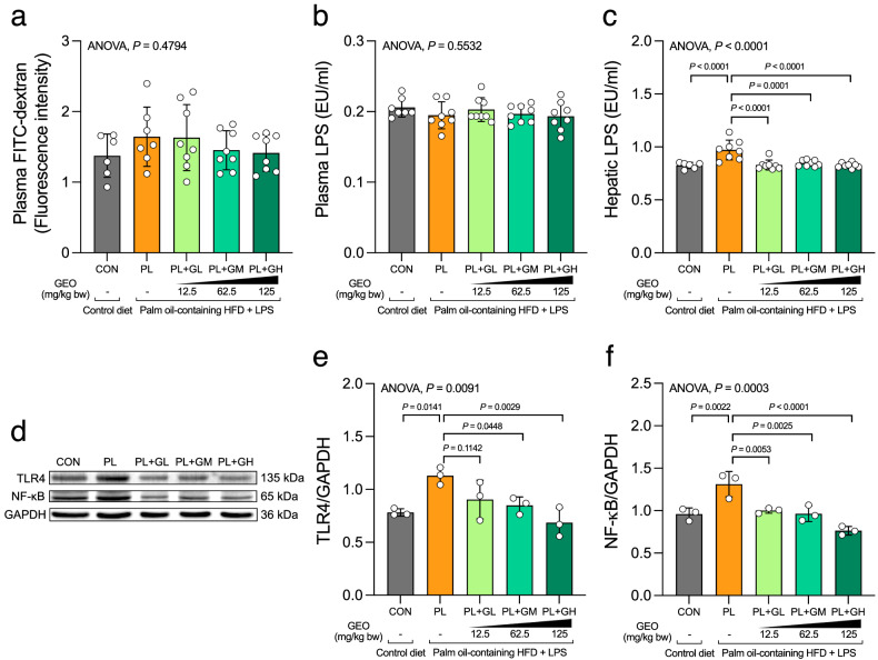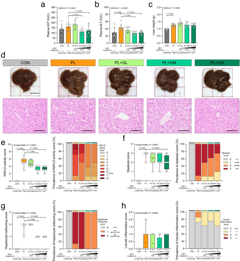 Conclusion: This study demonstrated that GEO prevents NASH progression which is probably associated with the alterations of gut microbiota and inhibition of the LPS/TLR4/NF-κB pathway. Hence, GEO may offer a promising application as a dietary supplement for the prevention of NASH.
