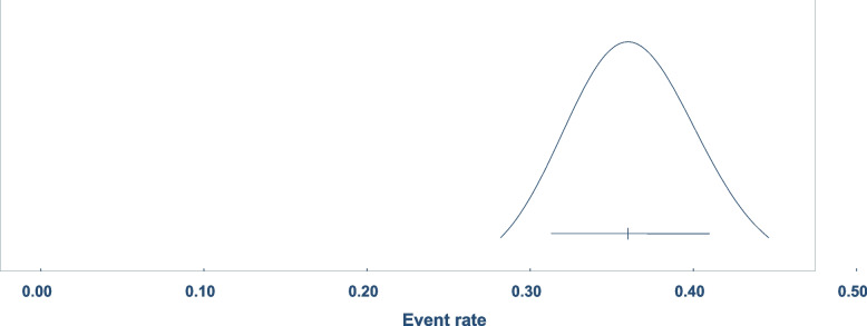 Results: Pooled proportion of early-stage breast cancer at diagnosis in Ethiopian hospitals was found to be 36% with a 95% confidence interval ranging from 31 to 41% and a 95% prediction interval ranging from 28 to 45%.