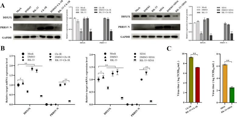 Porcine reproductive and respiratory syndrome virus (PRRSV) is a severe disease with substantial economic consequences for the swine industry. The DEAD-box helicase 3 (DDX3X) is an RNA helicase that plays a crucial role in regulating RNA metabolism, immunological response, and even RNA virus infection. However, it is unclear whether it contributes to PRRSV infection. Recent studies have found that the expression of DDX3X considerably increases in Marc-145 cells when infected with live PRRSV strains Ch-1R and SD16; however, it was observed that inactivated viruses did not lead to any changes. By using the RK-33 inhibitor or DDX3X-specific siRNAs to reduce DDX3X expression, there was a significant decrease in the production of PRRSV progenies. In contrast, the overexpression of DDX3X in host cells substantially increased the proliferation of PRRSV. A combination of transcriptomics and metabolomics investigations revealed that in PRRSV-infected cells, DDX3X gene silencing severely affected biological processes such as ferroptosis, the FoxO signalling pathway, and glutathione metabolism. The subsequent transmission electron microscopy (TEM) imaging displayed the typical ferroptosis features in PRRSV-infected cells, such as mitochondrial shrinkage, reduction or disappearance of mitochondrial cristae, and cytoplasmic membrane rupture. Conversely, the mitochondrial morphology was unchanged in DDX3X-inhibited cells. Furthermore, silencing of the DDX3X gene changed the expression of ferroptosis-related genes and inhibited the virus proliferation, while the drug-induced ferroptosis inversely promoted PRRSV replication. In summary, these results present an updated perspective of how PRRSV infection uses DDX3X for self-replication, potentially leading to ferroptosis via various mechanisms that promote PRRSV replication.