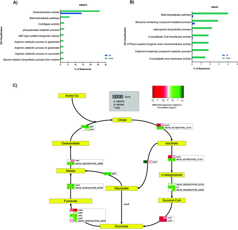 Carbapenem-resistant Acinetobacter baumannii (CRAB): metabolic adaptation and transcriptional response to human urine (HU)