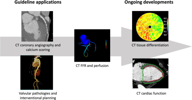 Recent findings: In recent years, new clinical applications of CCT have emerged. Major applications include the assessment of coronary artery disease and structural heart disease, with corresponding recommendations by major guidelines of international societies. While CCT already allows for a rapid and non-invasive diagnosis, technical improvements enable further in-depth assessments using novel imaging parameters with high temporal and spatial resolution. Those developments facilitate diagnostic and therapeutic decision-making as well as improved prognostication. This review determined that recent advancements in both hardware and software components of CCT allow for highly advanced examinations with little radiation exposure. This particularly strengthens its role in preventive care and coronary artery disease. The addition of functional analyses within and beyond coronary artery disease offers solutions in wide-ranging patient populations. Many techniques still require improvement and validation, however, CCT possesses potential to become a "one-stop-shop" examination.