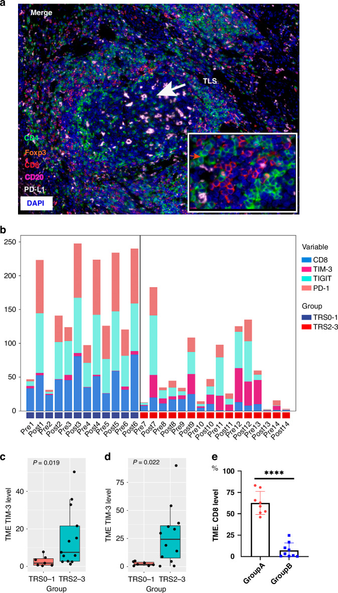 Results: Totally 42 patients were enrolled, achieving a 27.0% pCR rate. The 1-year, 2-year DFS and OS rates were 89.2%, 64.4% and 97.3%, 89.2%, respectively. RNA-seq analysis highlighted T-cell activation as the most significantly enriched pathway. The tumour immune microenvironment (TIME) was characterised by high CD4, CD8, Foxp3, and PD-L1 levels, associating with better pathological regression (TRS0/1). TIME was categorised into immune-infiltrating, immune-tolerant, and immune-desert types. Notably, the immune-infiltrating type and tertiary lymphoid structures correlated with improved outcomes. In the context of nICT, TIM-3 negatively influenced treatment efficacy, while elevated TIGIT/PD-1 expression post-nICT correlated positively with CD8+ T cell levels. TCR-seq identified three TCR rearrangements, underscoring the specificity of T-cell responses.