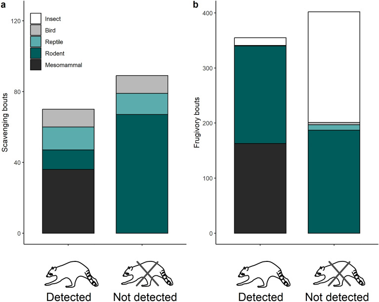 Mid-sized mammals (i.e., mesomammals) fulfill important ecological roles, serving as essential scavengers, predators, pollinators, and seed dispersers in the ecosystems they inhabit. Consequently, declines in mesomammal populations have the potential to alter ecological processes and fundamentally change ecosystems. However, ecosystems characterized by high functional redundancy, where multiple species can fulfil similar ecological roles, may be less impacted by the loss of mesomammals and other vertebrates. The Greater Everglades Ecosystem in southern Florida is a historically biodiverse region that has recently been impacted by multiple anthropogenic threats, most notably the introduction of the Burmese python (Python molurus bivittatus). Since pythons became established, mesomammal populations have become greatly reduced. To assess whether these declines in mesomammals have affected two critical ecosystem functions-scavenging and frugivory-we conducted experiments in areas where mesomammals were present and absent. We did not observe significant differences in scavenging or frugivory efficiency in areas with and without mesomammals, but we did observe significant differences in the communities responsible for scavenging and frugivory. Despite the observed evidence of redundancy, the changes in community composition could potentially lead to indirect consequences on processes like seed dispersal and disease dynamics within this ecosystem, emphasizing the need for further study.