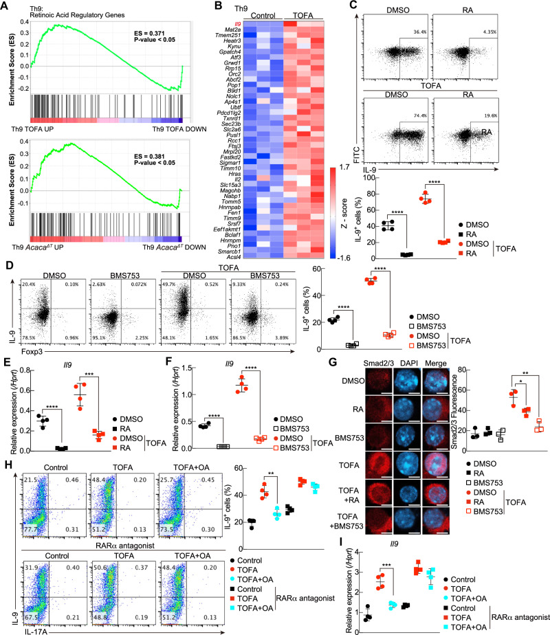 Fatty acid metabolism constrains Th9 cell differentiation and antitumor immunity via the modulation of retinoic acid receptor signaling