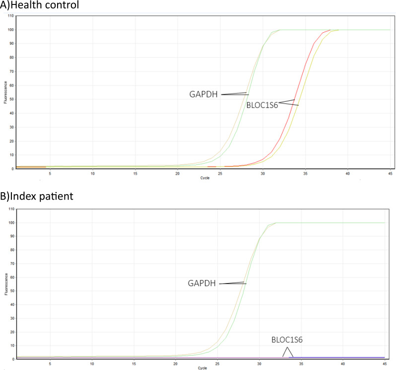 Conclusion: This study introduces a case of Hermansky-Pudlak Syndrome Type 9 (HPS-9) caused by a homozygous deletion in the BLOC1S6 gene. We identified an approximately 7-kb deletion encompassing exon 1 and the intronic region of the gene. The absence of BLOC1S6 expression, confirmed via Real-time PCR, highlights the importance of studying the pathogenicity of the deletion and its impact on the patient's health. Our findings contribute to the sparse knowledge on HPS-9 and underscore the need for further exploration into the genetic causes of this rare disorder.