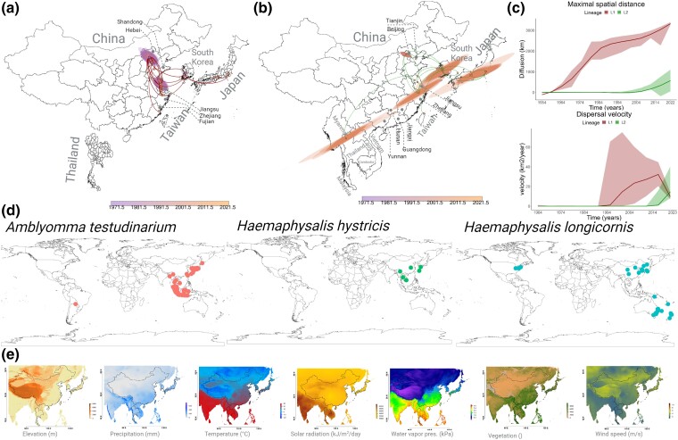 Severe fever with thrombocytopenia syndrome virus (SFTSV) is a tick-borne virus recognized by the World Health Organization as an emerging infectious disease of growing concern. Utilizing phylodynamic and phylogeographic methods, we have reconstructed the origin and transmission patterns of SFTSV lineages and the roles demographic, ecological, and climatic factors have played in shaping its emergence and spread throughout Asia. Environmental changes and fluctuations in tick populations, exacerbated by the widespread use of pesticides, have contributed significantly to its geographic expansion. The increased adaptability of Lineage L2 strains to the Haemaphysalis longicornis vector has facilitated the dispersal of SFTSV through Southeast Asia. Increased surveillance and proactive measures are needed to prevent further spread to Australia, Indonesia, and North America.