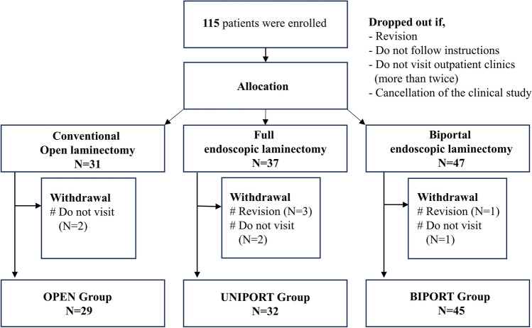 Prospective comparative analysis of three types of decompressive surgery for lumbar central stenosis: conventional, full-endoscopic, and biportal endoscopic laminectomy
