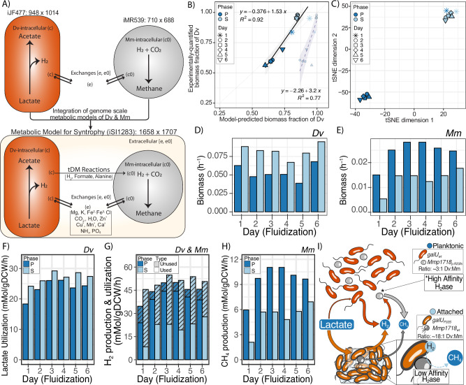 Resource partitioning is central to the incredible productivity of microbial communities, including gigatons in annual methane emissions through syntrophic interactions. Previous work revealed how a sulfate reducer (Desulfovibrio vulgaris, Dv) and a methanogen (Methanococcus maripaludis, Mm) underwent evolutionary diversification in a planktonic context, improving stability, cooperativity, and productivity within 300-1000 generations. Here, we show that mutations in just 15 Dv and 7 Mm genes within a minimal assemblage of this evolved community gave rise to co-existing ecotypes that were spatially enriched within a few days of culturing in a fluidized bed reactor. The spatially segregated communities partitioned resources in the simulated subsurface environment, with greater lactate utilization by attached Dv but partial utilization of resulting H2 by low affinity hydrogenases of Mm in the same phase. The unutilized H2 was scavenged by high affinity hydrogenases of planktonic Mm, producing copious amounts of methane. Our findings show how a few mutations can drive resource partitioning amongst niche-differentiated ecotypes, whose interplay synergistically improves productivity of the entire mutualistic community.