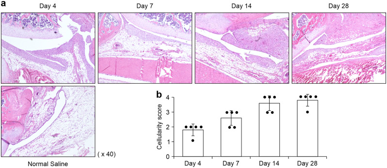 Results: We identified infiltrating macrophages as well as increases in CCL2 and TGF-β levels as collagen deposition progressed. Gene transfer of the CCL2-antagonist before arthritis induction attenuated collagen deposition remarkably.