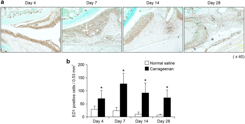 Methods: We induced arthritis in male Wistar rats using intra-articular injections of carrageenan. Furthermore, to evaluate the effects of a CCL2 antagonist on protein expression and collagen deposition in the IFP of the rats, we transferred an N-terminal-truncated CCL2 gene into a rat model via electroporation-mediated intramuscular injection. Macrophage infiltration and collagen deposition in the IFP were analyzed in vivo. Groups were compared using the Mann-Whitney U test and Student's t-test.