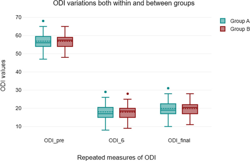 Patients and methods: Seventy-two patients with low-grade isthmic spondylolisthesis were enrolled in this retrospective cohort-control study, with a minimum follow-up period of 18 months. Disability was assessed using the Oswestry Disability Index (ODI), while back and leg discomfort were rated using the Visual Analogue Scale (VAS) for each patient. The measurements comprised the sacral slope (SS), pelvic tilt (PT), pelvic incidence (PI), and Meyerding slip grades. We measured lumbar lordosis (LL), and segmental lordosis.