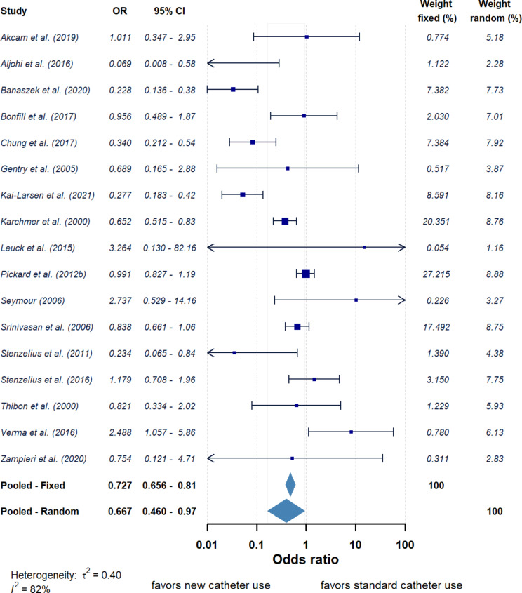 Methods: A Systematic Literature Review was conducted in Ovid Medline, Web of Science and PubMed, to identify studies which investigated the incidence of UTI and the causative micro-organisms, in patients with different urinary catheter devices. The articles were selected based on a strict set of inclusion and exclusion criteria. The data regarding UTI incidence was extracted and calculated odds ratio were compared across studies and pooled when types of catheters were compared. CAUTI causative micro-organisms, if stated within the research pieces, were also gathered.