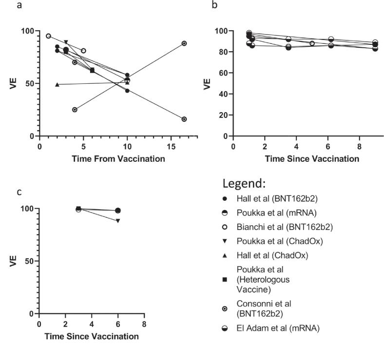 Conclusions: Vaccination against SARS-CoV2 in HCWs is protective against infection, symptomatic infection, and hospitalisation. Waning protection is reported but this awaits more mature studies to understand durability more clearly. This study is limited by varying non-pharmacological responses to COVID-19 between included studies, a predominantly female and working age population, and limited information on asymptomatic transmission or long COVID protection.