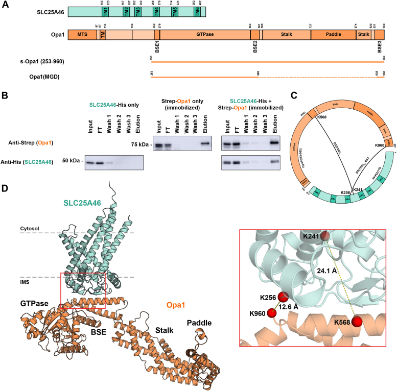 Identification of SLC25A46 interaction interfaces with mitochondrial membrane fusogens Opa1 and Mfn2