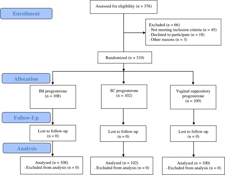 Comparing the outcomes of in-vitro fertilization in patients receiving vaginal, subcutaneous, and intramuscular progesterone for luteal phase support: a three-armed randomized controlled trial