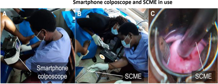 Methods: We screened women aged 18 and 60 years, who presented for cervical cancer screening at the Kawempe National Referral Hospital Kampala, and evaluated the experience of their providers (nurses). Nurses received a 2-day training by the study doctors on how to use the SCME, which was added to the standard Visual Inspection with Acetic acid (VIA)-based cervical cancer screening. The SCME was used to take colposcopy images before and after VIA at positions 12 and 6 O'clock if VIA negative, and on precancer-suspicious lesions if VIA positive. We used questionnaires to assess the women's experiences after screening, and the experience of the nurses who operated the SCME.