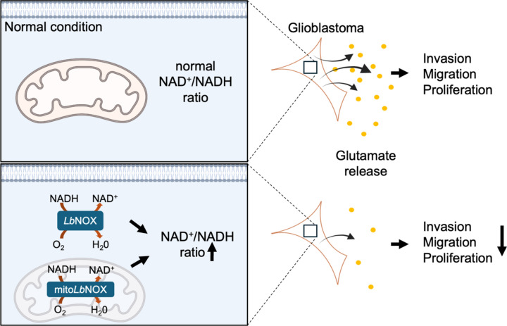 Keywords: LbNOX; Glioblastoma; Glutamate; Invasion; NAD+/NADH.
