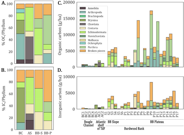 High-latitude ecosystems have been overlooked in carbon budgets, which traditionally focus on mangroves, salt marshes, and seagrasses. The benthic assemblages and their Nature Contributions to People in Namuncurá - Burdwood Bank I and II, two offshore sub-Antarctic Marine Protected Areas (MPAs), are the conservation values. Here we show that the carbon reservoirs of these MPAs can be greater than those of their Antarctic counterparts, which, together with their extension, emphasize the need to maintain their protected status. Considering their total area, these MPAs stored in biomass 52,085.78 Mg C, corresponding 34,964.16 Mg to organic carbon (OC) and 17,121.62 Mg to inorganic carbon (IC). Surficial sediments stored 933,258,336 Mg C with 188,089,629 Mg of OC and 745,168,707 Mg of IC. However, when accounting for CO2 production through CaCO3 precipitation, the IC fractions decrease to 3,150.37 Mg C and 137,111,042 Mg C for biomass and sediments, respectively. We assume low sediment deposition due to the oceanic location, as direct sedimentation rates for these areas are unavailable. Most blue carbon assessments have focused solely on OC, despite the formation of CaCO3 releases CO2, decreasing net carbon storage. We compared various approaches for incorporating carbonates into carbon estimations. These results underscore the importance of including IC into carbon assessments and highlights the importance of sub-Antarctic benthic ecosystems as nature-based solutions to climate change.
