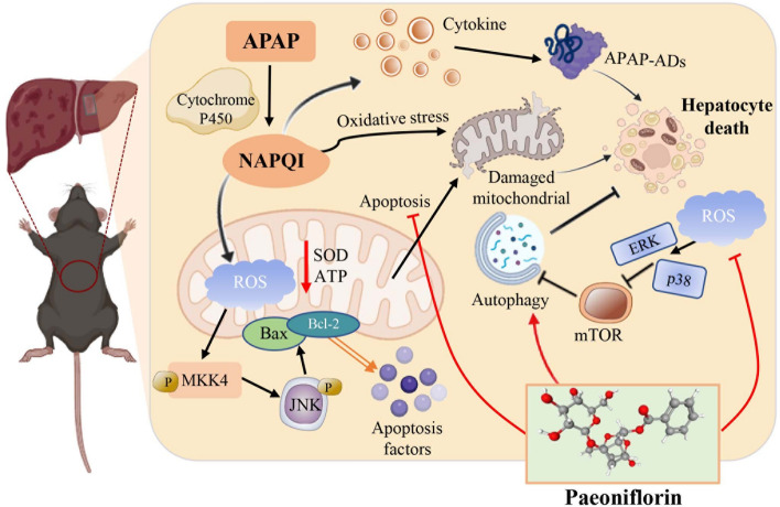 Conclusions: Paeoniflorin mitigated liver injury by activating autophagy to suppress oxidative stress and apoptosis via the MAPK/mTOR signaling pathway. Taken together, our findings elucidate the role and mechanism of paeoniflorin in DILI, which is expected to provide a new therapeutic strategy for the development of paeoniflorin.