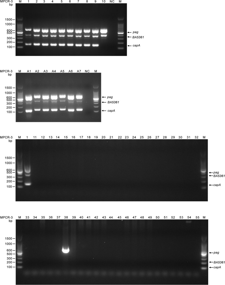 Methods: The complete genomes of B. anthracis, B. cereus, B. thuringiensis, and B. weihenstephanensis were de novo annotated with Prokka, and these annotations were used by Roary to produce the pan-genome. B. anthracis exclusive genes were identified by Perl script, and their specificity was examined by nucleotide BLAST search. A local BLAST alignment was performed to confirm the presence of the identified genes across various B. anthracis strains. Multiplex polymerase chain reactions (PCR) were established based on the identified genes.