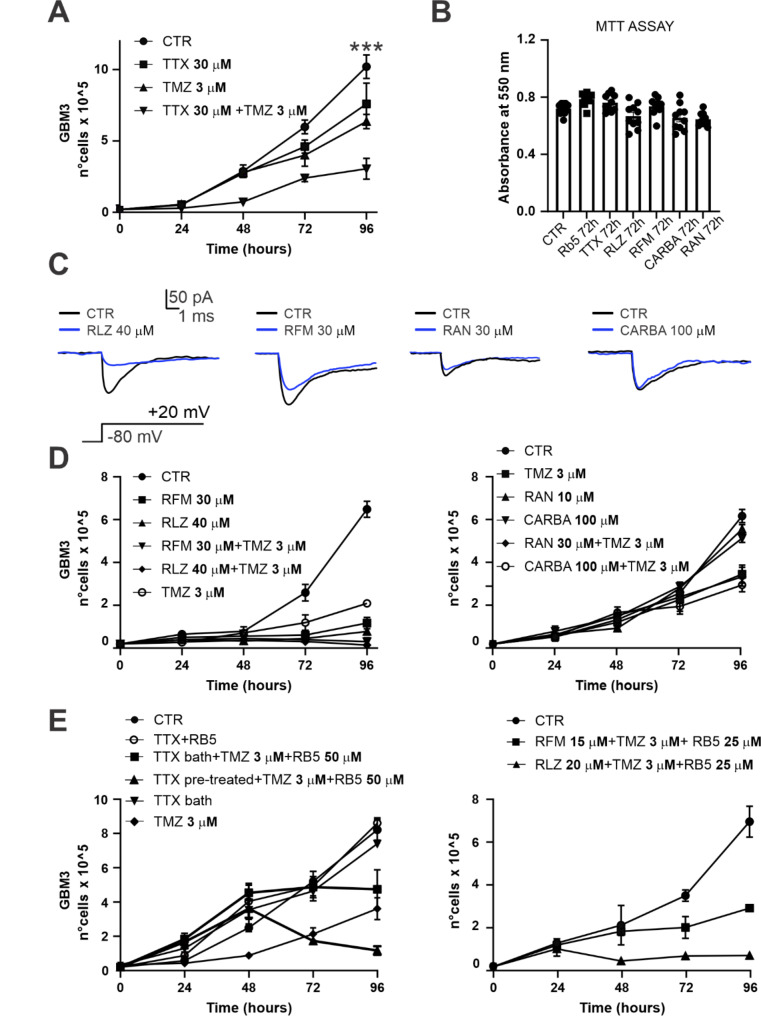 Results: We demonstrated that Nav is functionally expressed by GSCs mainly during the G0 phase of the cell cycle, suggesting its pivotal role in modulating the RMP. The pharmacological blockade of Nav made GBM cells more susceptible to temozolomide (TMZ), a standard drug for this type of tumor, by inducing cell cycle re-entry from G0 phase to G1/S transition. Additionally, inhibition of Nav substantially influenced the self-renewal and multipotency features of GSCs, concomitantly enhancing their degree of differentiation. Finally, our data suggested that Nav positively regulates GBM stemness by depolarizing the RMP and suppressing the ERK signaling pathway. Of note, in vivo proliferation assessment confirmed the increased susceptibility to TMZ following pharmacological blockade of Nav.