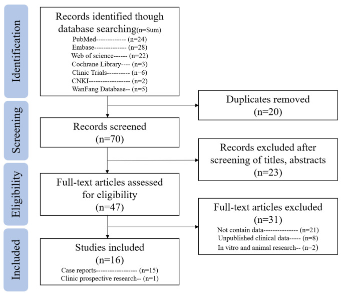 Results: This systematic review included 16 clinical studies after screening, consisting of 15 case reports and one prospective controlled clinical trial, involving a total of 42 patients with PJI treated with bacteriophage therapy. The average patient age was 62.86 years, and 43 joints were treated, with patients undergoing an average of 5.25 surgeries. The most common pathogen in these infections was Staphylococcus aureus, accounting for 18 cases. 33 patients received cocktail therapy, while nine were treated with a single bacteriophage preparation. Additionally, all patients underwent suppressive antibiotic therapy (SAT) postoperatively. All patients were followed up for an average of 13.55 months. There were two cases of recurrence, one of which resulted in amputation one year postoperatively. The remaining patients showed good recovery outcomes. Overall, the results from the included studies indicate that bacteriophage therapy effectively eradicates infectious strains in various cases of PJI, with minimal side effects, demonstrating promising clinical efficacy.