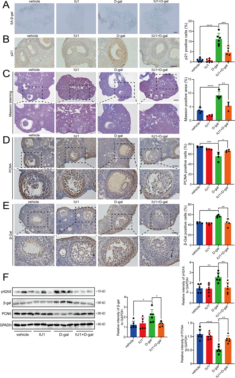 Methods: We measured USP14 mRNA expression in granulosa cells from biochemical POI (bPOI) patients. In KGN cells, we used IU1 and siRNA-USP14 to specifically inhibit USP14 and constructed a cell line stably overexpressing USP14 to examine its effects on DDR function and cellular senescence in granulosa cells. Next, we explored the therapeutic potential of IU1 in POI mouse models induced by D-galactose.