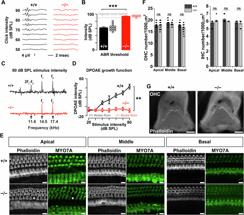 Microtubules are essential for various cellular processes. The functional diversity of microtubules is attributed to the incorporation of various α- and β-tubulin isotypes encoded by different genes. In this work, we investigated the functional role of β4B-tubulin isotype (TUBB4B) in hearing and vision as mutations in TUBB4B are associated with sensorineural disease. Using a Tubb4b knockout mouse model, our findings demonstrate that TUBB4B is essential for hearing. Mice lacking TUBB4B are profoundly deaf due to defects in the inner and middle ear. Specifically, in the inner ear, the absence of TUBB4B lead to disorganized and reduced densities of microtubules in pillar cells, suggesting a critical role for TUBB4B in providing mechanical support for auditory transmission. In the middle ear, Tubb4b-/- mice exhibit motile cilia defects in epithelial cells, leading to the development of otitis media. However, Tubb4b deletion does not affect photoreceptor function or cause retinal degeneration. Intriguingly, β6-tubulin levels increase in retinas lacking β4B-tubulin isotype, suggesting a functional compensation mechanism. Our findings illustrate the essential roles of TUBB4B in hearing but not in vision in mice, highlighting the distinct functions of tubulin isotypes in different sensory systems.