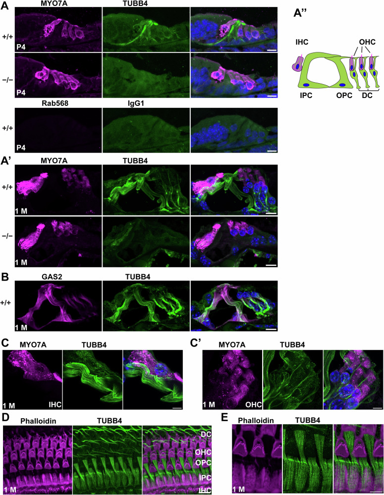 TUBB4B is essential for the cytoskeletal architecture of cochlear supporting cells and motile cilia development
